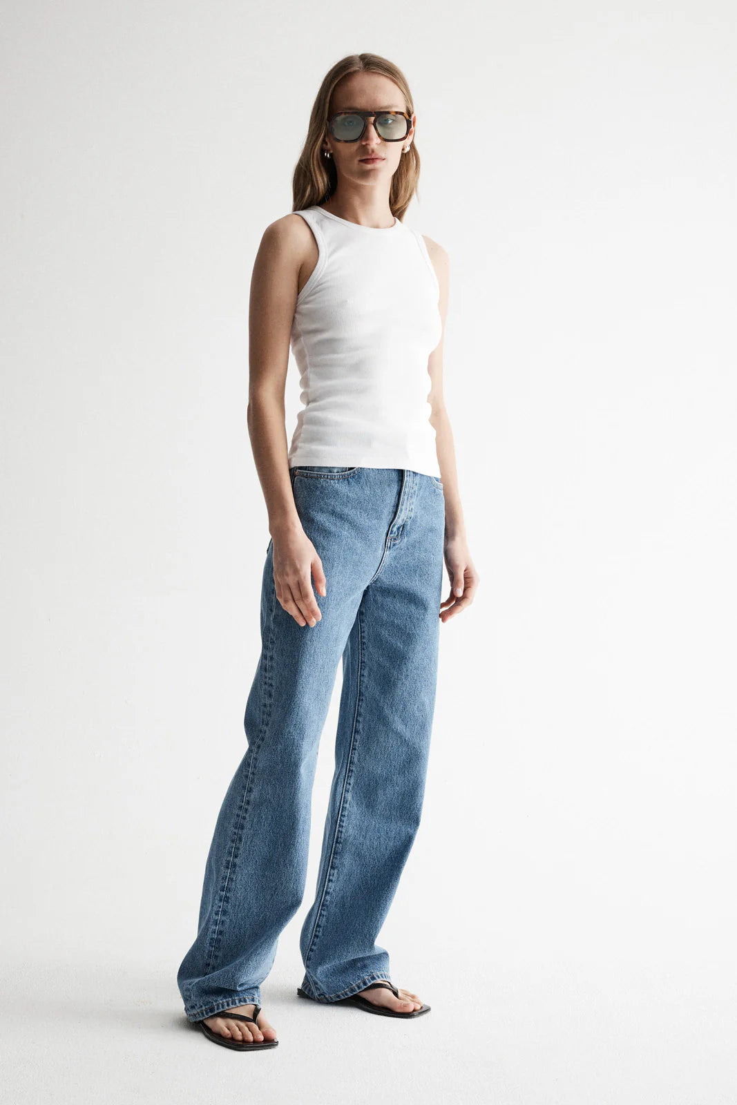 A premium basic, the Nola Tank from Elka is a staple for every wardrobe. Made with a sleeveless design, the neck and armholes have a self-bind finish. The premium cotton fabrication is ribbed for a comfortable fit and sleek look. A bold basic, the crisp white colour adds a breath of fresh air to any outfit.