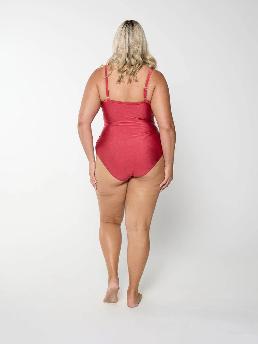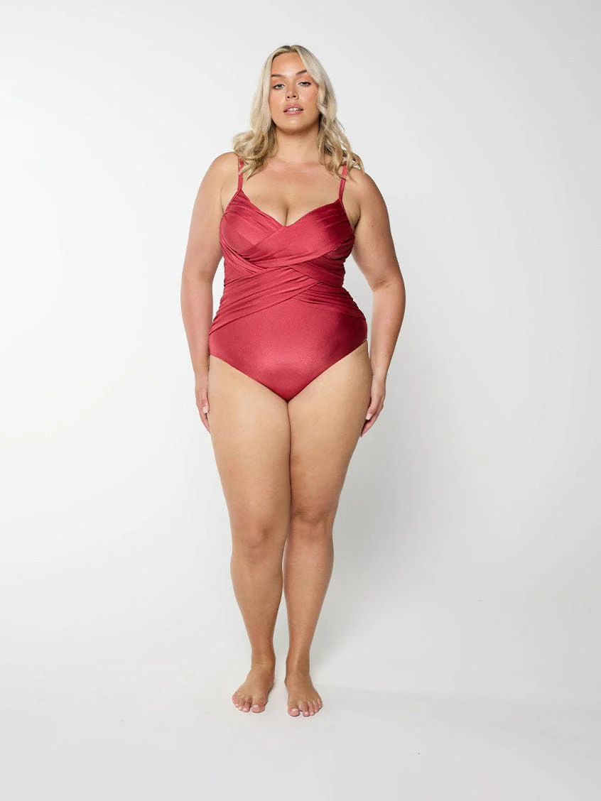 METALLIC SANGRIA RED CRISS CROSS ONE PIECE
