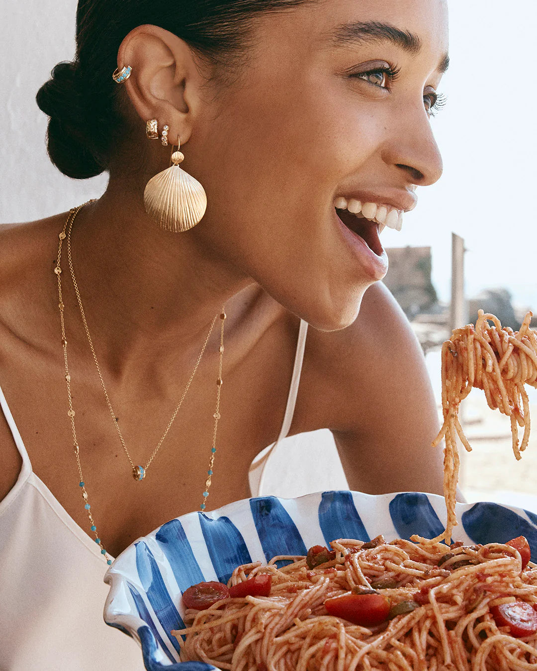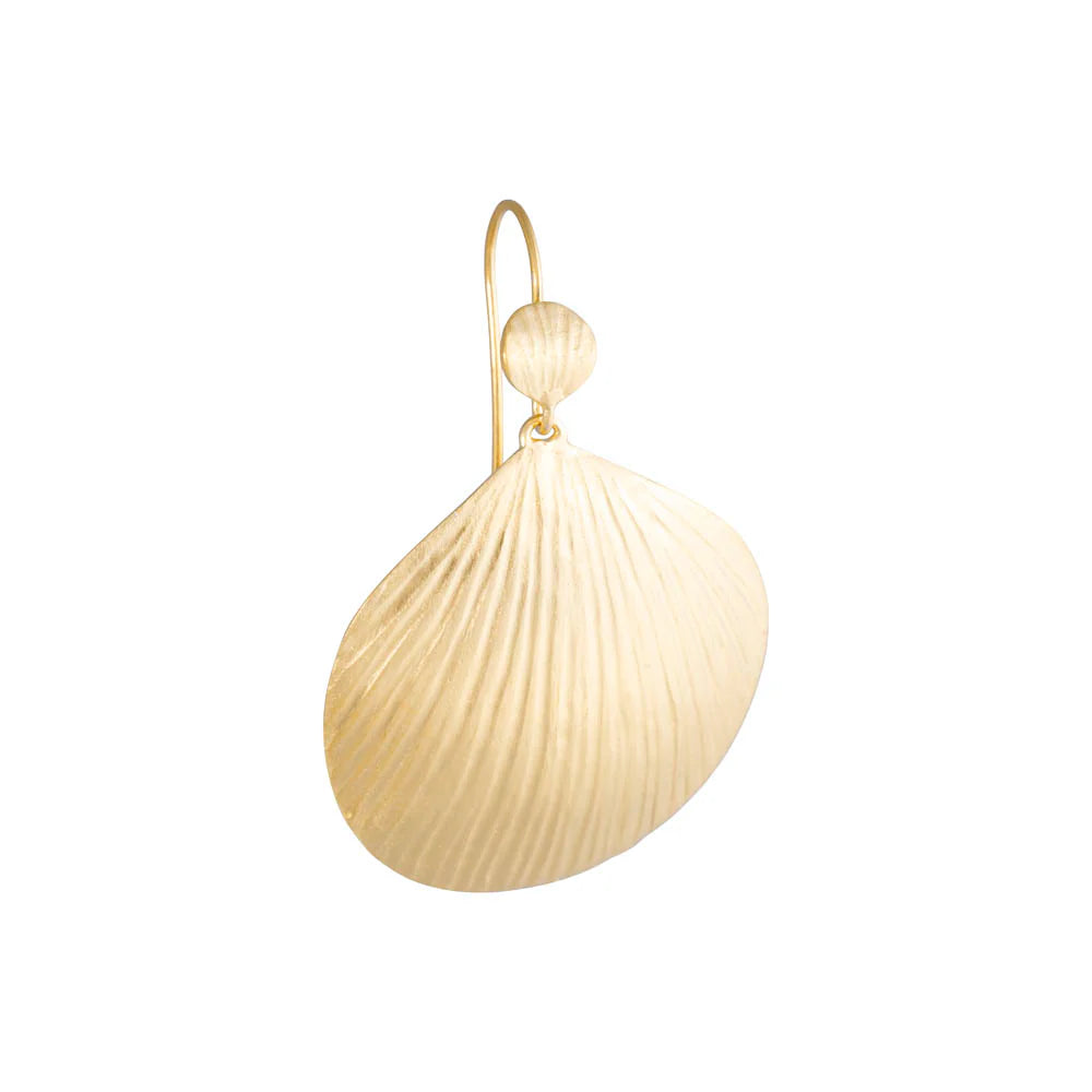 A nostalgic piece from designer Susannah Fairley who from the age of 6 began collecting shells at her local beach to create jewellery. These hook earrings are lightweight and showcase a large perfect gold shell hanging from a smaller shell. A classic pair of summer earrings that can be worn day into night.
