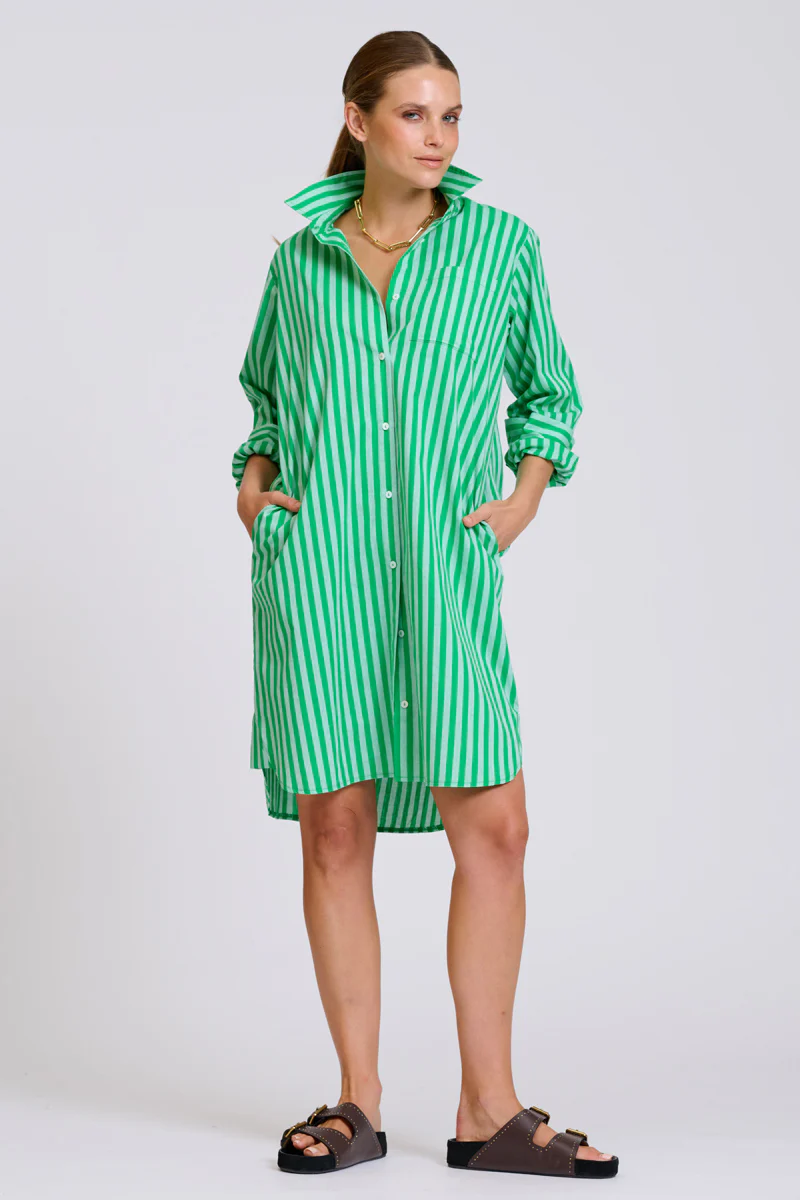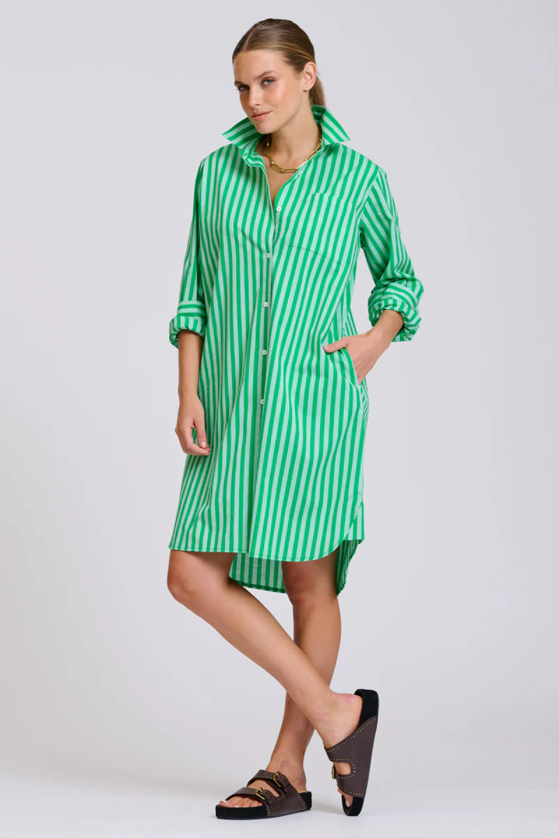 The Classic Shirtdress is button through, longer in length than the popover and comes finished with a chest pocket & hidden side pockets. Perfect for any pursuit, beach, bar, or boardroom. Wear it lose or belt it to flatter your waist.