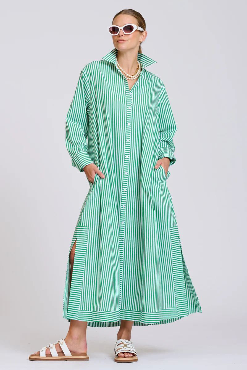 Our new stunning Sybil dress is longline, with feature side vents & placket, all tonal but with a twist. French cuffs & a self-belt, this is out new SHIRTY favourite! Crafted in cool crisp cotton, this will be on high rotation all season long.